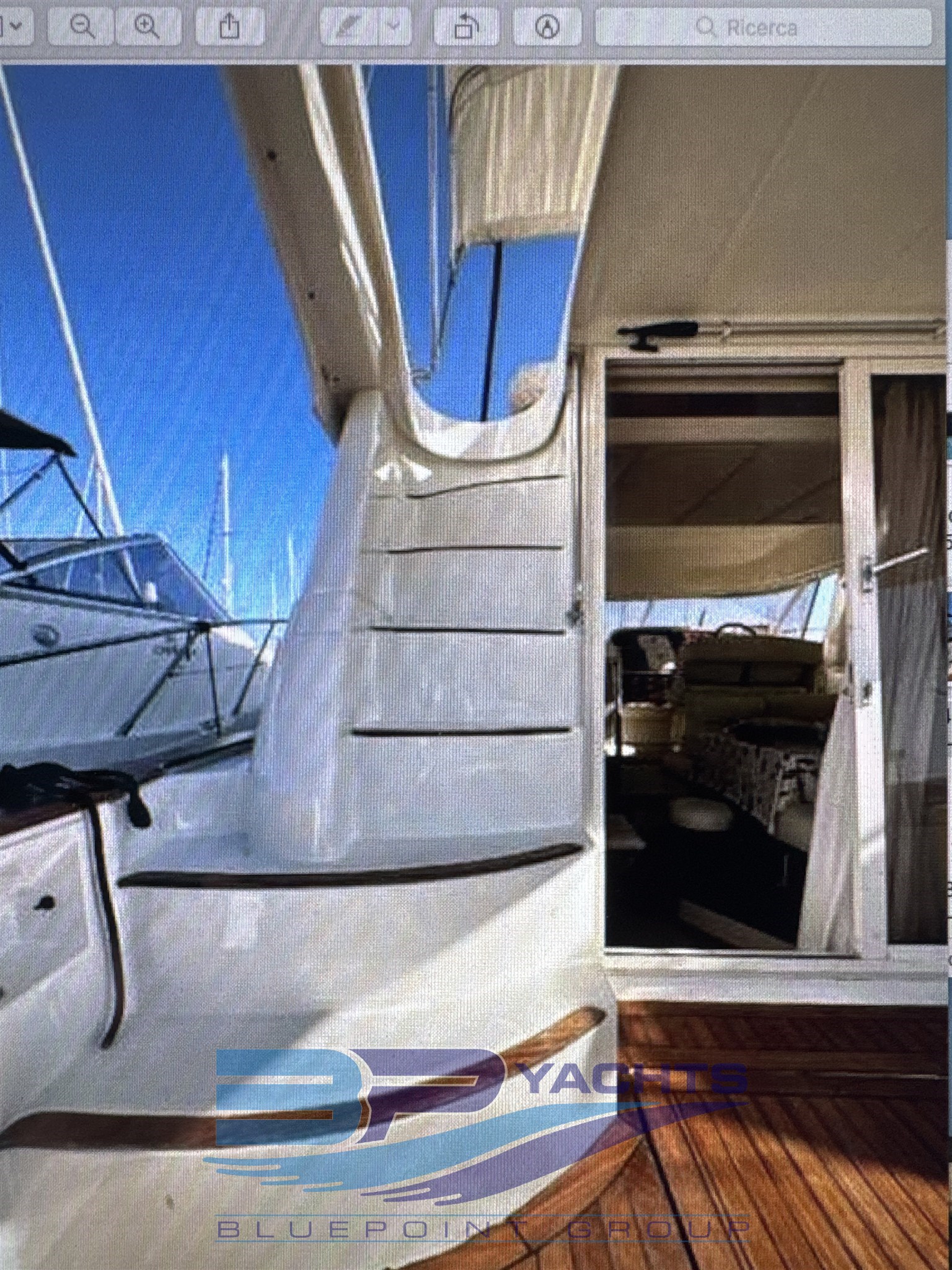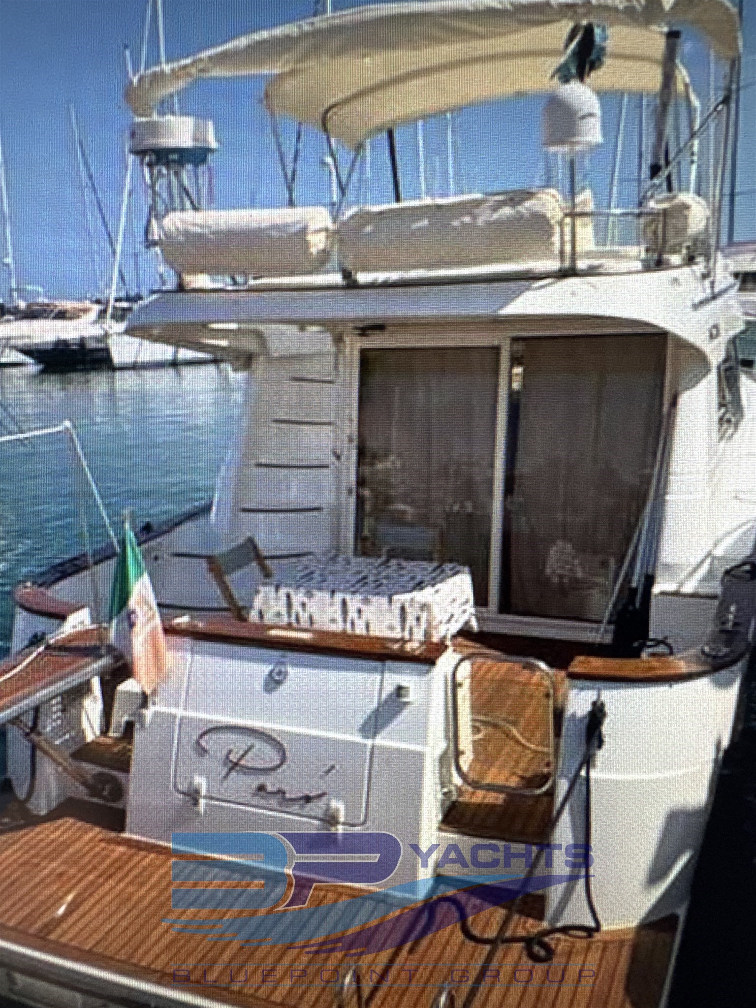 Strumentazione elettronica di navigazione Antenna radar, Comando motori elettronico, Ecoscandaglio, Pilota automatico, Plotter con antenna GPS, Radar, Radio VHF.